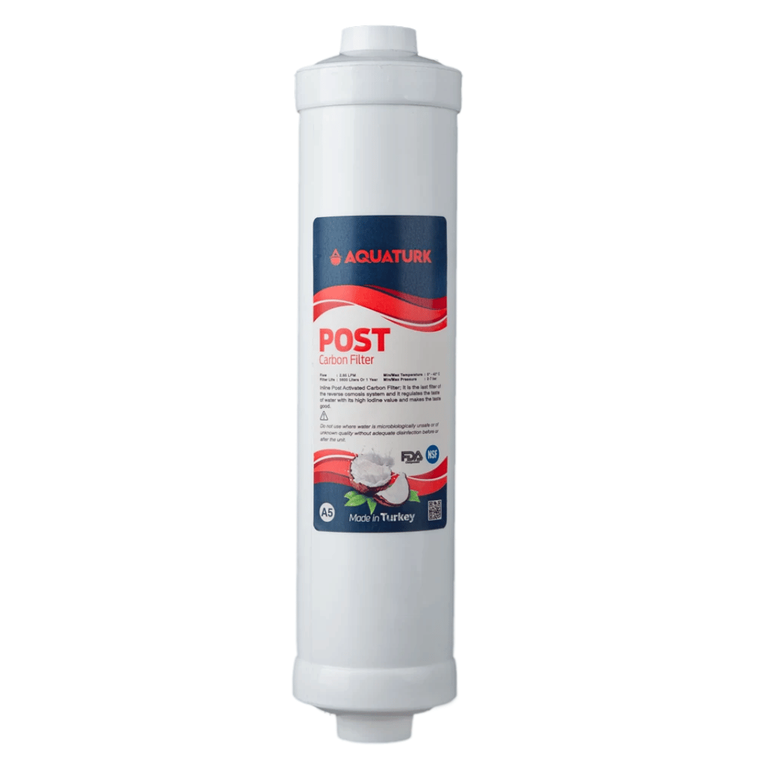 تحتوي علي كربون نباتي كوكونت النشط لمعالجة المياه و ازالة الروائح و الغازات المسببة لتغير طعم المياه يتم تغيرها كل 12 شهر.